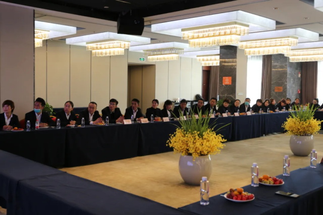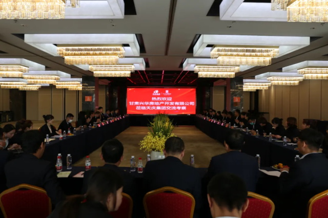 参观结束后,观摩团一行与天庆集团相关部室负责人在天庆温泉酒店展开座谈。座谈中,甘肃兴华房地产开发有限公司销售部经理范桃梅介绍了甘肃兴华房地产的有关情况,甘肃兴华房地产开发有限公司成立于2005年,目前旗下拥有10个子(分)公司。她表示,此次参观让她受益匪浅,天庆集团作为甘肃省民营企业的典范,二十年来成果卓著,是他们企业发展道路上学习的楷模,为他们今后的工作发展指明了方向。