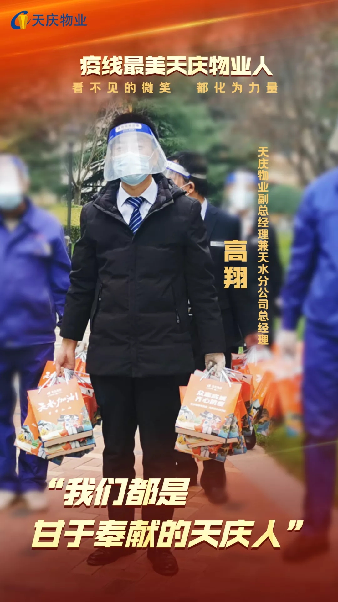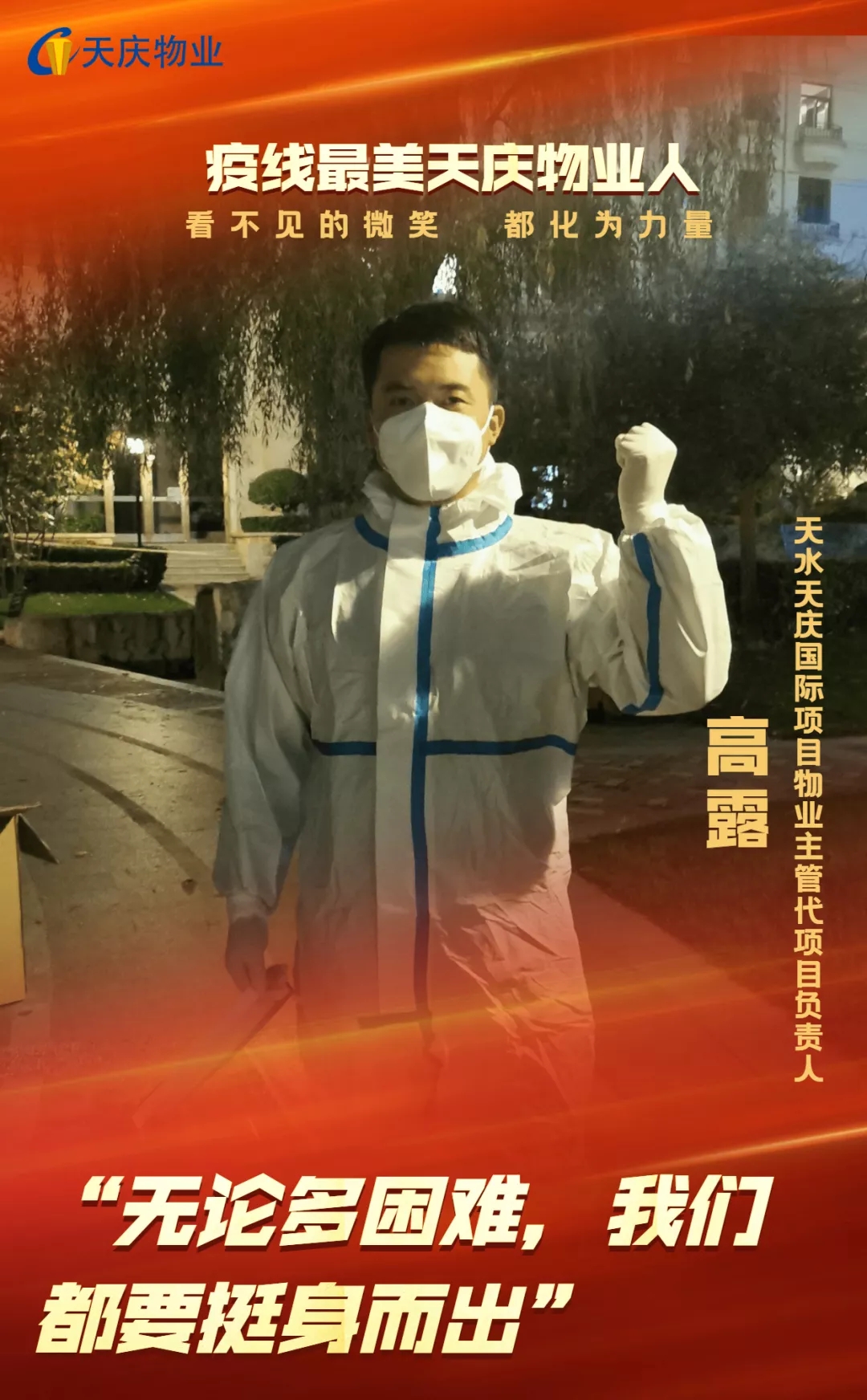 一名党员就是一面旗帜。高翔不仅是天庆物业副总经理兼天水分公司总经理,还是一名共产党员。“党组织就是堡垒,共产党员就是先锋,关键时刻我们要豁得出、冲得上、挺得住”正是这样的决心和责任感,在天水疫情爆发之际,他肩负整体天庆物业天水分公司、四个小区、两个服务案场的防疫管理和维护;同时在天庆国际小区被封闭管理后缺少项目经理的情况下,他主动奔赴一线,选择与23名物业工作人员站在一起,成立了防疫应急保障队,带领员工全面进入“战时状态”,不畏风雨,不分昼夜,坚定勇敢的站在疫情防控阻击战的最前沿。这一战,就是17天。