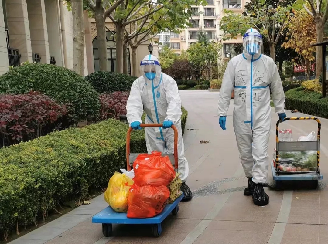 10月31日下午四点,天水天庆国际小区16号楼发现有确诊病例,随即16号楼全面封闭,楼上50多户业主的日常服务需求就落在了天庆国际物业主管徐浩和电梯维修工文亚刚的肩上。