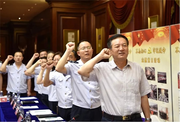 下午15时,主题党日活动在全体党员高唱《国际歌》声中拉开序幕。在甘肃天庆集团兰州天庆公司党支部书记窦瑞琳的带领下,全体党员面对党旗,举起右手庄严宣誓。在重温入党誓词中,每位党员的心灵再一次接受了洗礼,激励党员“不忘初心,牢记使命”,永葆共产党人的政治本色。宣誓完毕后,兰州市税务局机关第一党支部书记尚鹏,甘肃天庆集团兰州天庆公司党支部书记窦瑞琳分别介绍了各自支部情况,交流了党建工作经验。