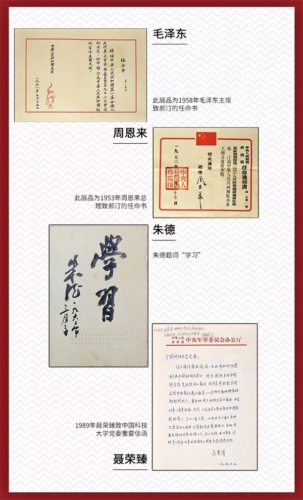 1“红色记忆”部分将建党以来的革命历史、政治经济、文化艺术、科学技术等多个领域的辉煌发展历程浓缩并呈现在观众面前,展品涉及毛泽东主席及周恩来总理签署的重要任命文件,朱德总司令的重要题词以及聂荣臻元帅及董必武将军的重要书信和手稿,以及建国初期外交、文化、科技等领域的主要负责人的重要手迹。展览重点推出两个重量级展示系列,其一是习近平总书记在福建工作期间的重要著作《摆脱贫困》及时任福建省委书记项南为《摆脱贫困》所做序手稿和亲笔信,另有多位党和国家领导人致项南夫人汪志馨的贺卡和书信;其二是反映我国外交史尤其是中印友好发展的重要史料:有周恩来、宋庆龄、丘吉尔、西哈努克、甘地等各国政要共同亲笔签名的泰戈尔《生日书》极其罕见和珍贵。展览内容丰富,图文并茂,深入浅出,在一幅幅照片、书信中能体察到革命的艰辛历程,在一封封书信中能领略到先辈的博大情怀,在一份份文件中能见证我党一路走来的点点滴滴。它们不仅蕴含着伟大的革命精神,更是党史研究中不可多得的珍贵资料。