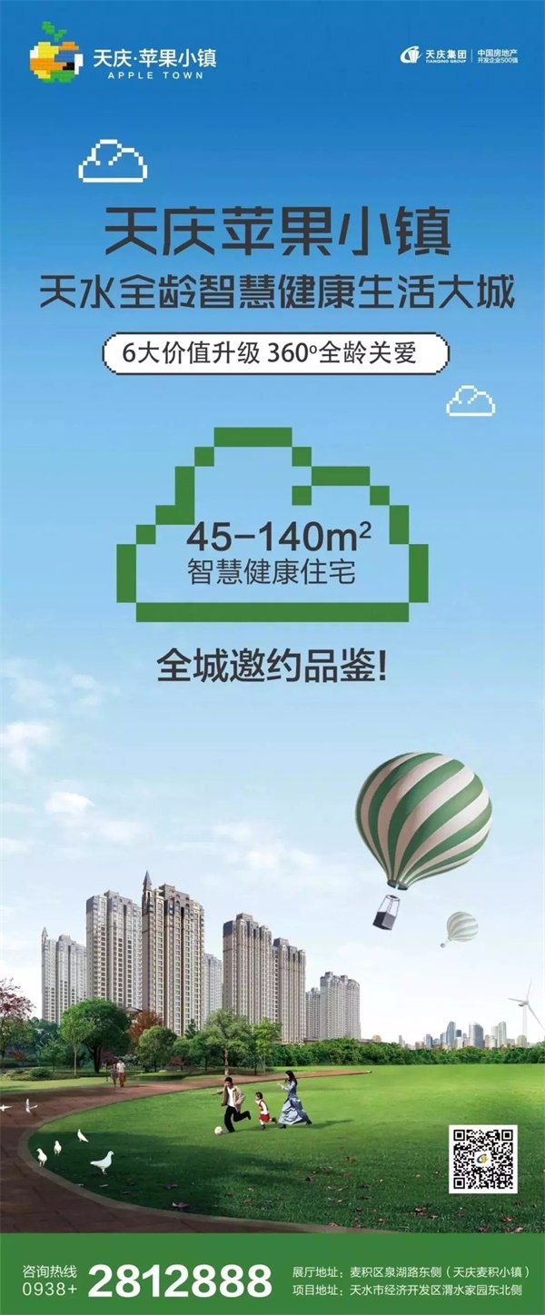 作为天庆集团在天水的又一匠心作品,天庆苹果小镇以智慧健康为蓝本,为城市中坚力量打造42万平精英住区,项目精心设计45-140㎡多层次户型,可满足不同客户的需求;3米住宅建筑层高,让空间更加通透开阔;严格工艺标准打造的高品质建筑,足以抵挡8度半裂度地震。在关注品质的同时,天庆苹果小镇注重项目的智能化提升,小区优先配备了人脸识别门禁系统、红外防入侵系统、智能停车机器人等高端科技配套,为业主量身打造一座安全便捷、智慧健康的新家。